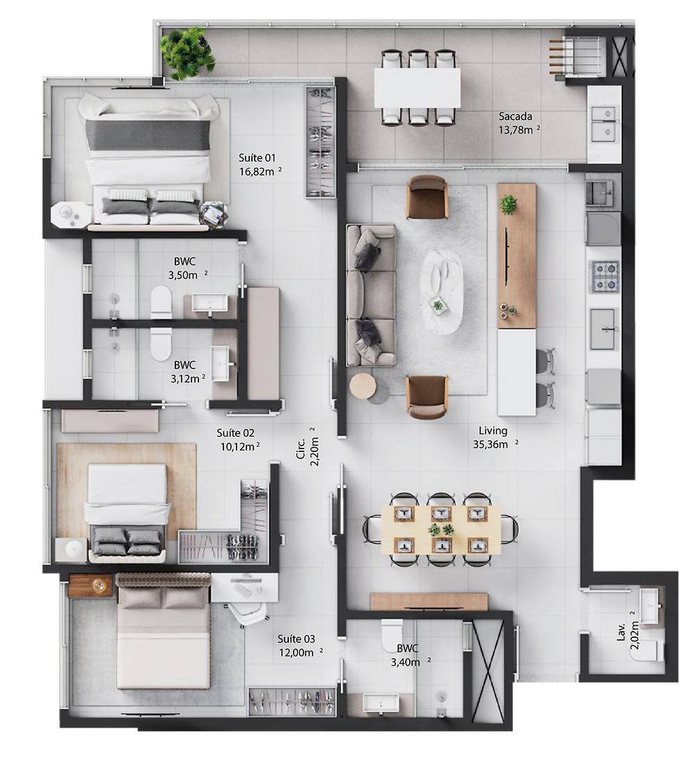 Em seu interior, o empreendimento foi projetado para proporcionar uma agradável e completa experiência de vida a quem busca por bem-estar e tranquilidade junto à natureza.